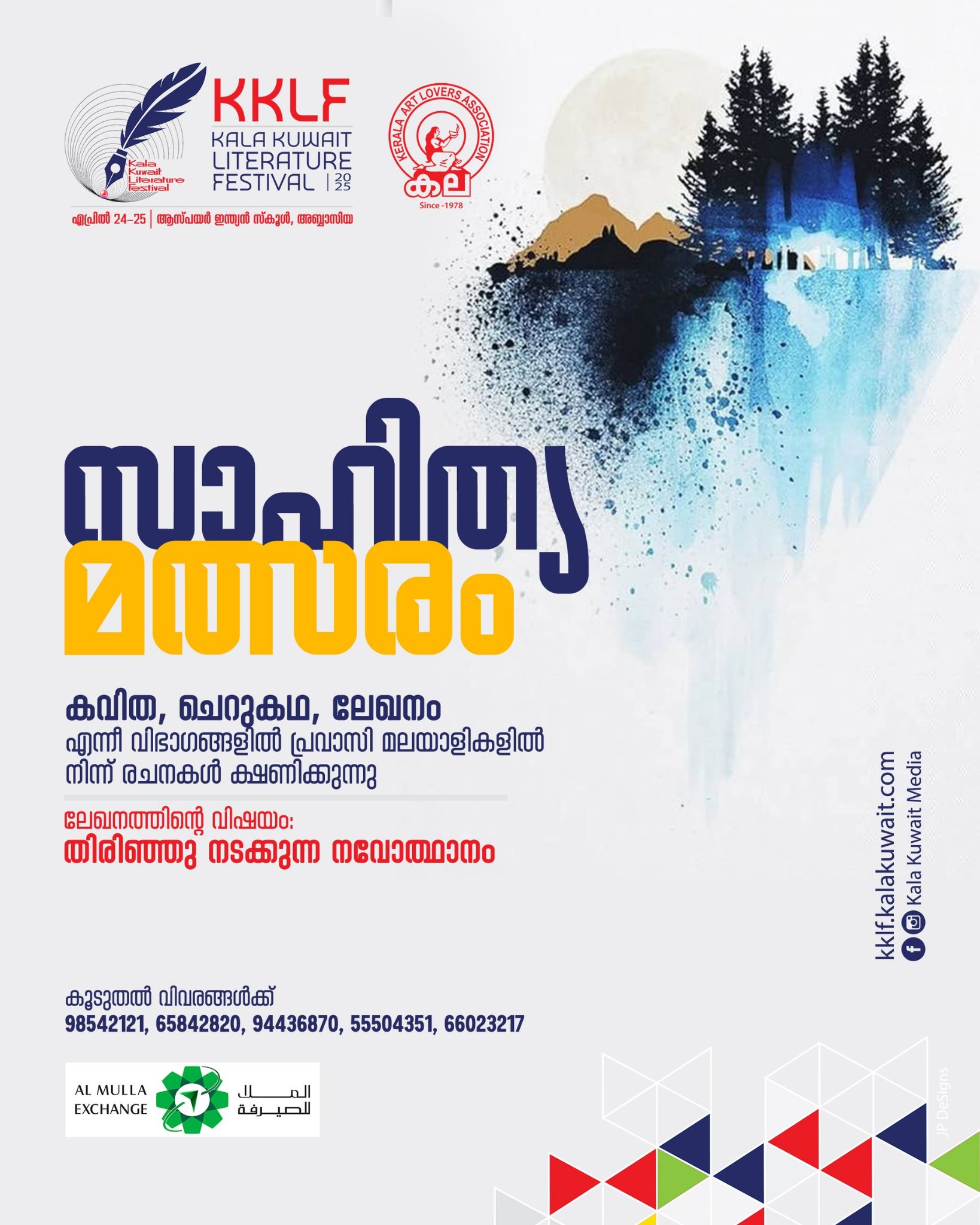 കുവൈറ്റ് സിറ്റി: കേരള ആർട്ട് ലവേഴ്സ് അസോസിയേഷൻ - കല കുവൈറ്റ് ലിറ്ററേച്ചർ ഫെസ്റ്റിവൽ KKLF ന്റെ ഭാഗമായി കുവൈറ്റിലെ മലയാളികൾക്കായി സാഹിത്യമത്സരങ്ങൾ സംഘടിപ്പിക്കുന്നു.